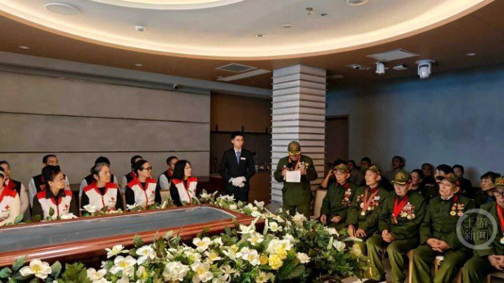 程铭送别会上,老兵们和红十字会志愿者前来送行(重庆市红十字会供图)。